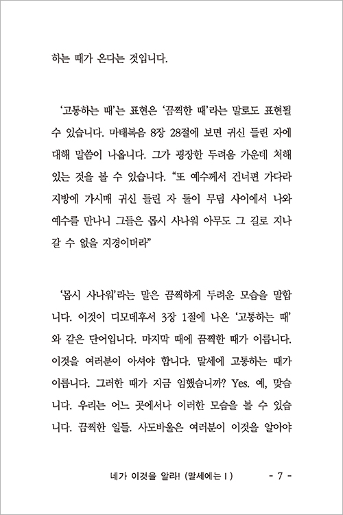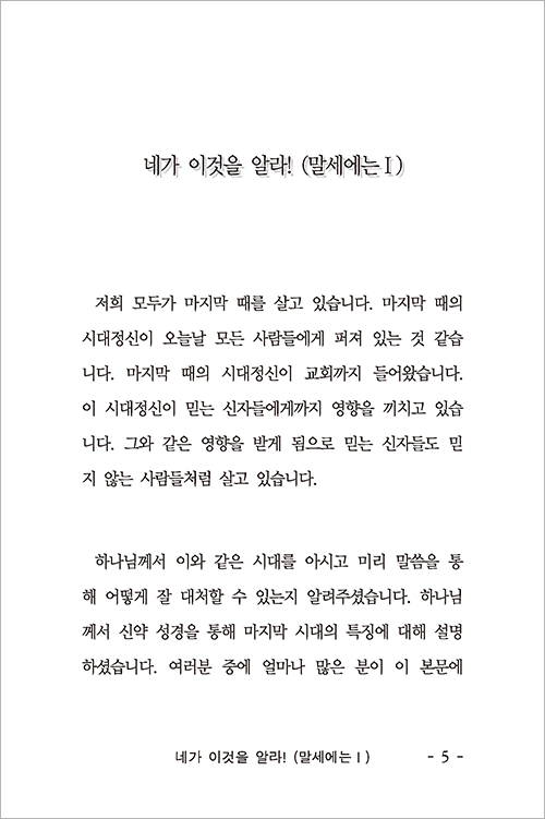 네가 이것을 알라 말세에는 > 신앙서적 안내