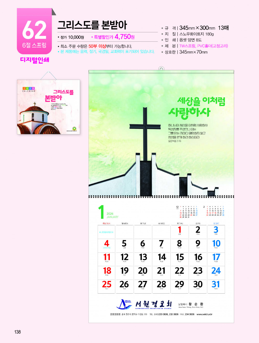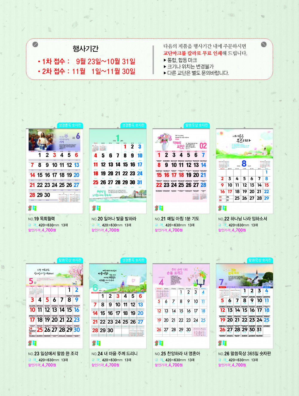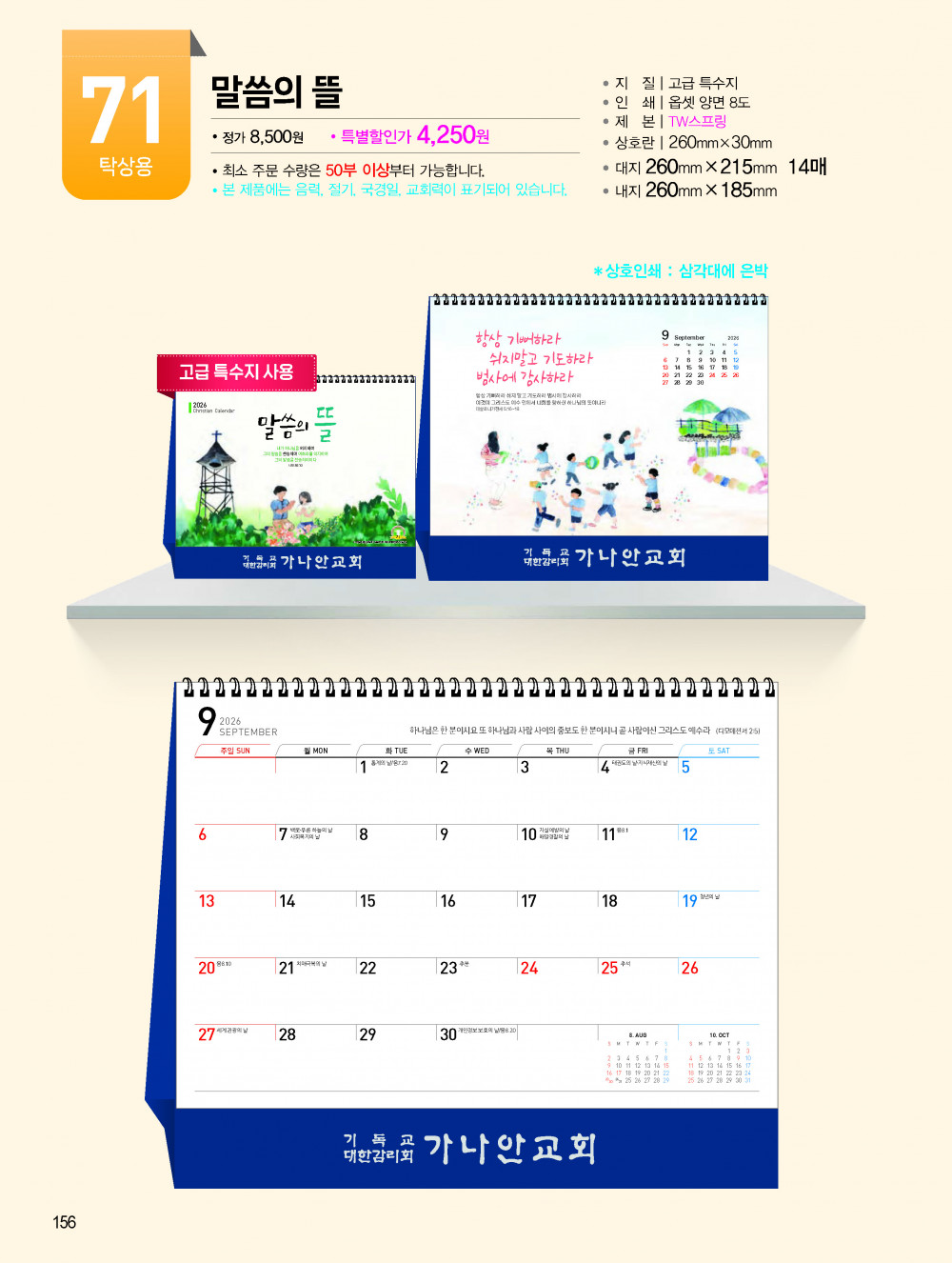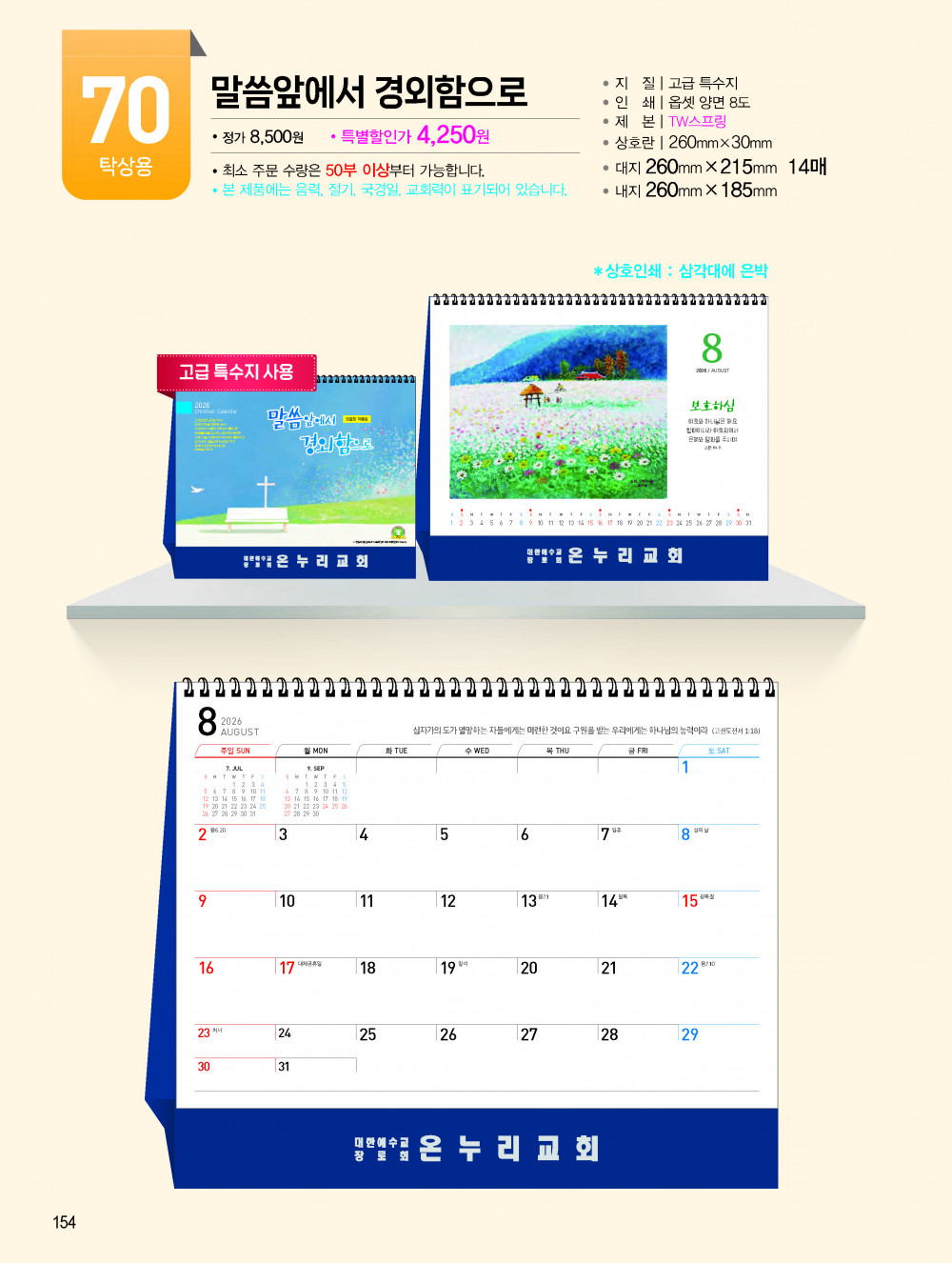 2026년 교회용 카렌다, 벽걸이,탁상용 안내 > 카렌다, 상패, 감사패 소개하여 드립니다.