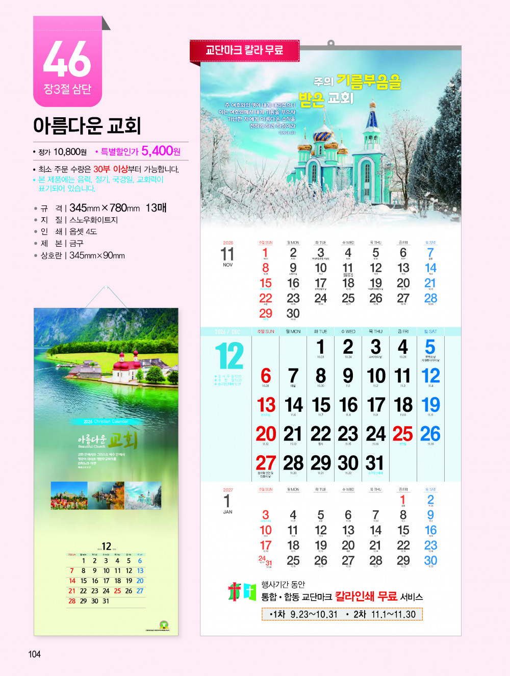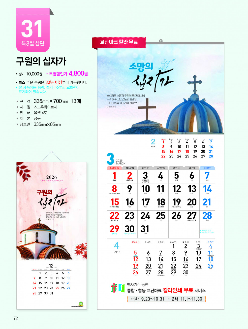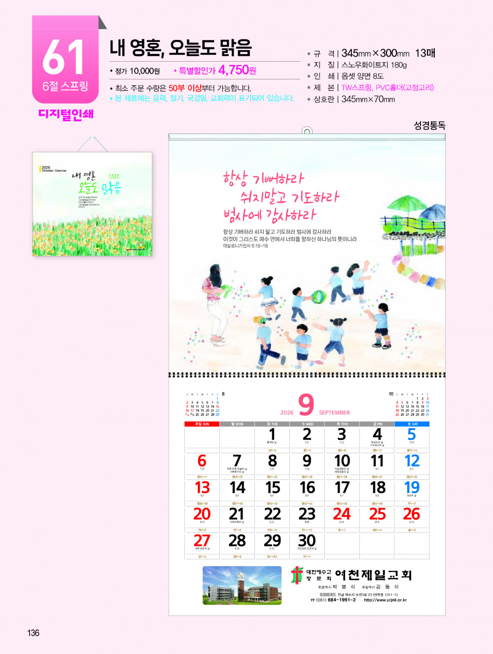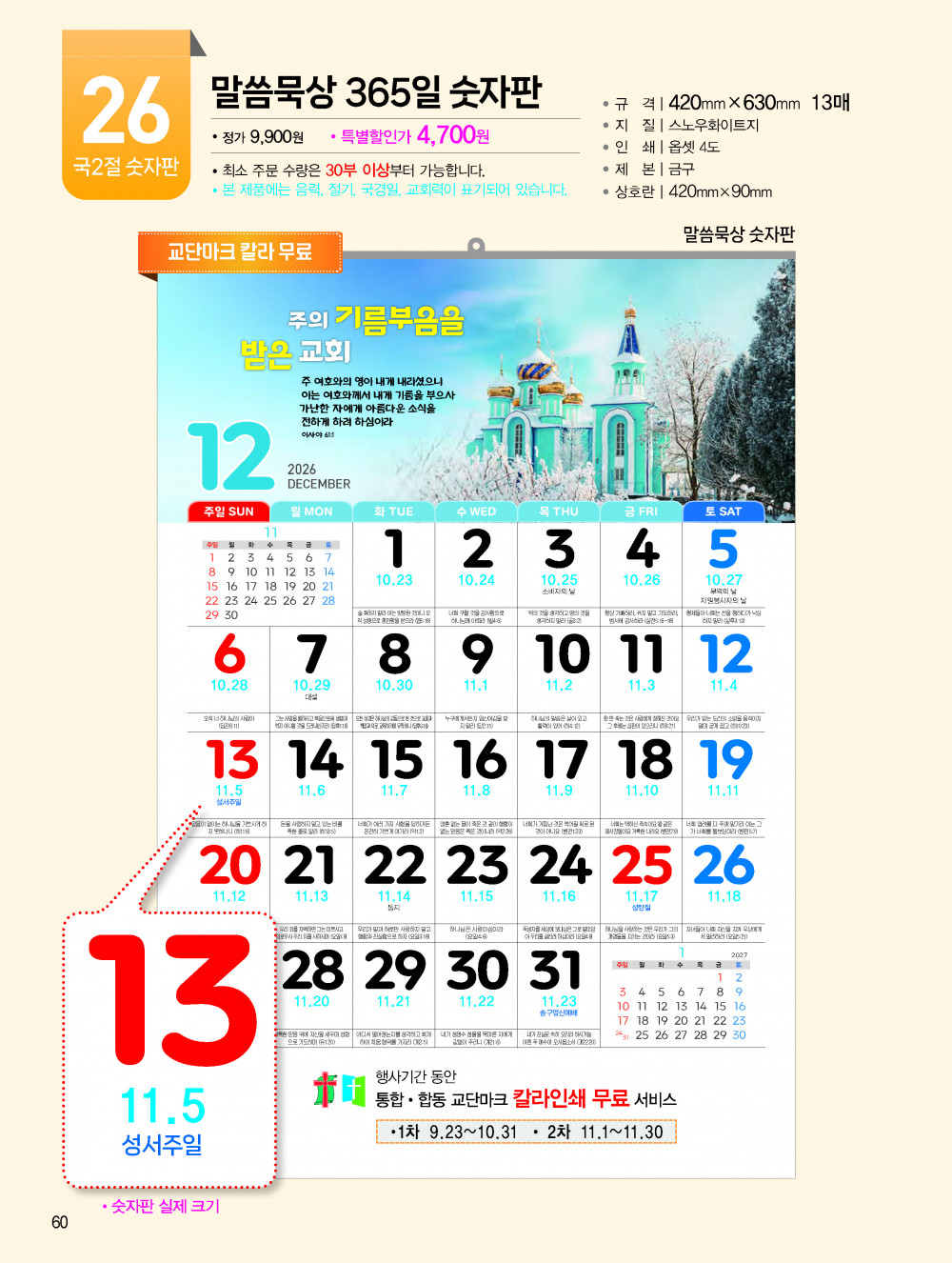 2026년 교회용 카렌다, 벽걸이,탁상용 안내 > 카렌다, 상패, 감사패 소개하여 드립니다.