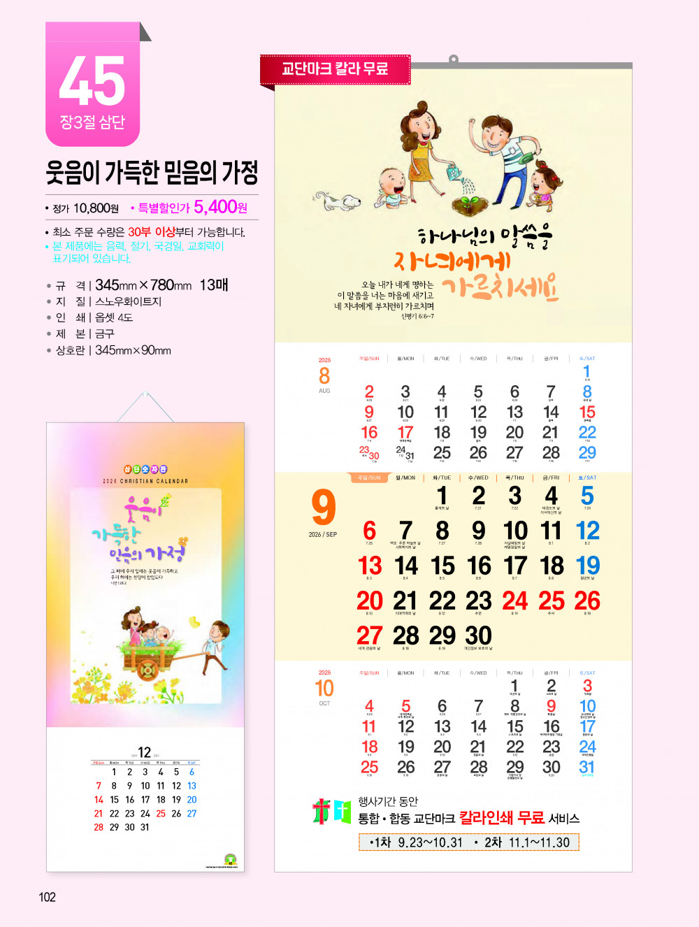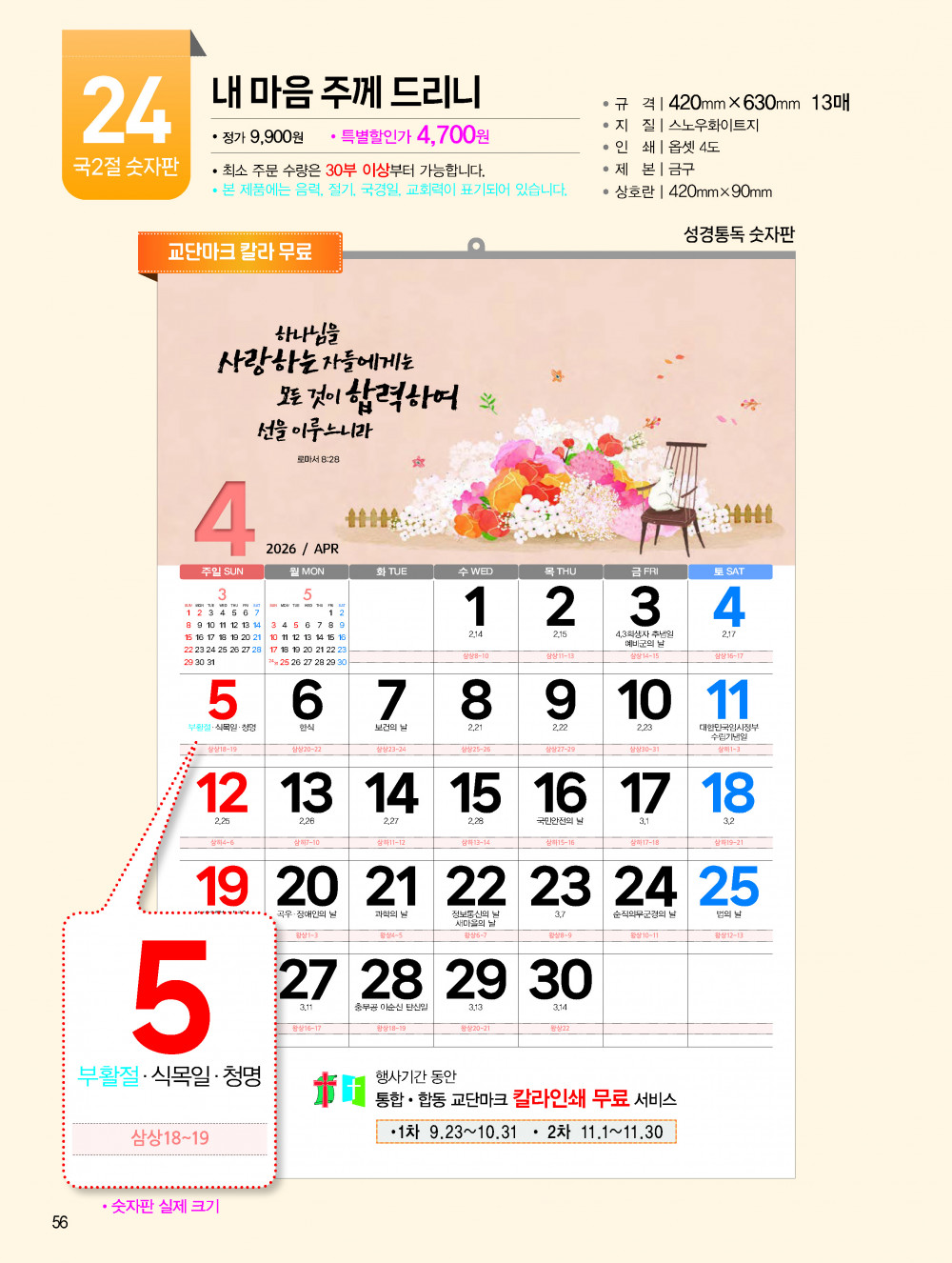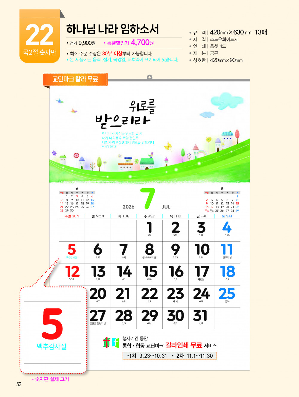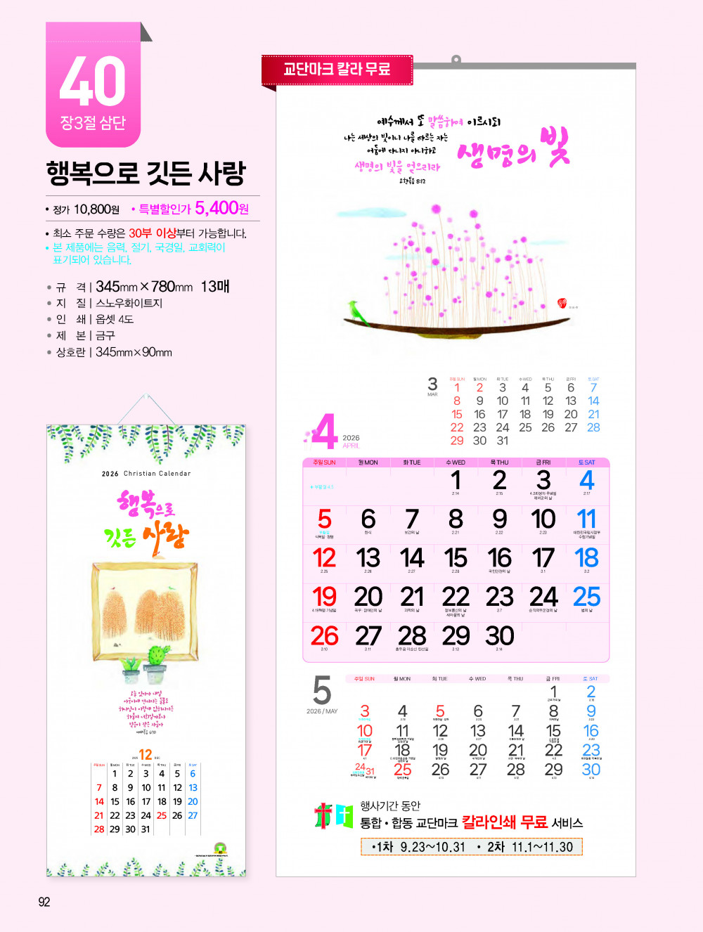2026년 교회용 카렌다, 벽걸이,탁상용 안내 > 카렌다, 상패, 감사패 소개하여 드립니다.